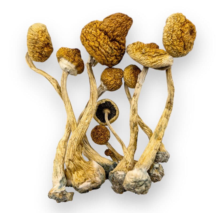 - Look: Dense clusters of large, golden-brown crowns with thick stems. When compared to many other cubensis strains, they are visually remarkable.
